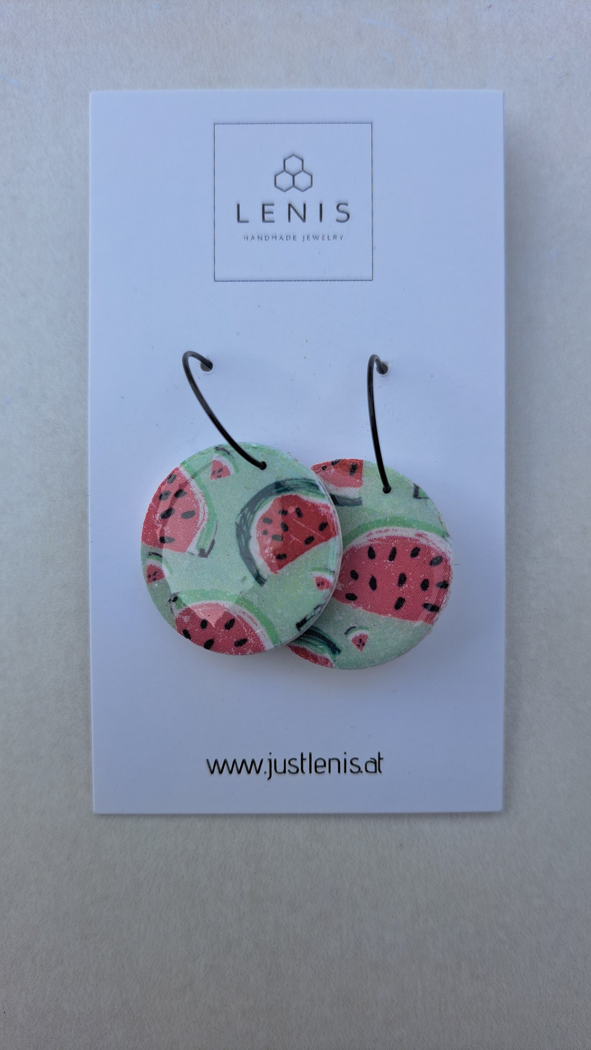 Jede Farbe wird von mir gemischt und anschließend steche ich sie mit dem gewünschten Cutter aus. Danach gebrannt – geschliffen – poliert und gebohrt. Der Letzte Schritt ist die Ohrringe zu einem fertigen Unikat zusammen zu setzen.